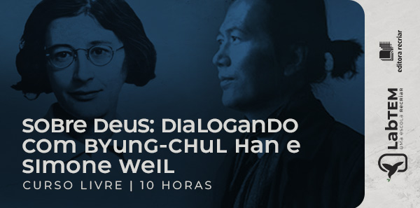 Neste curso apresentamos o diálogo entre dois grandes pensadores: Simone Weil, uma das filósofas mais instigantes do século XX, e Byung-Chul Han, talvez um dos filósofos mais conhecidos da atualidade. A partir de um diálogo interior com a filósofa e mística francesa, o filósofo coreano pensa e medita sobre temas como Atenção, Descriação, Vazio, Silêncio, Beleza, Dor e Inatividade. O curso se deterá sobre cada um destes temas em escuta e interação com os dois pensadores.